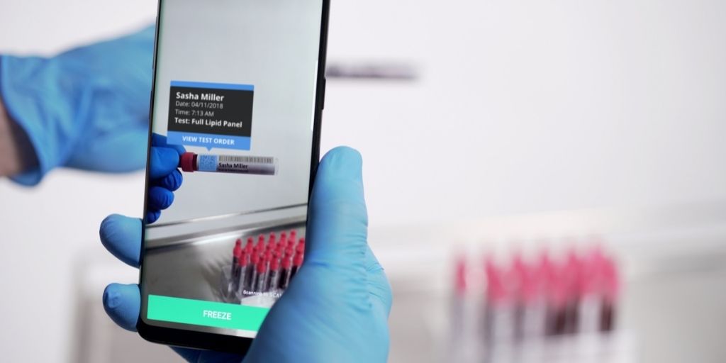 Using a smartphone with Scandit’s integrated barcode scanning and computer vision technology, a staff member at a test site can quickly scan a barcode on a booking form to identify the patient from a safe distance. Likewise, each sample vial has a barcode attached to it, and staff can give this a quick scan to ensure the test sample matches the booking ID.