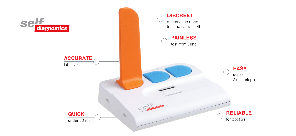 Selfdiagnostics gives home users access to a PCR (polymerase chain reaction) solution that is the gold standard for diagnosis of communicable diseases. The Selfdiagnostics product is comparable to laboratory testing in terms of accuracy and sensitivity but without the need to visit a lab or use special instruments.