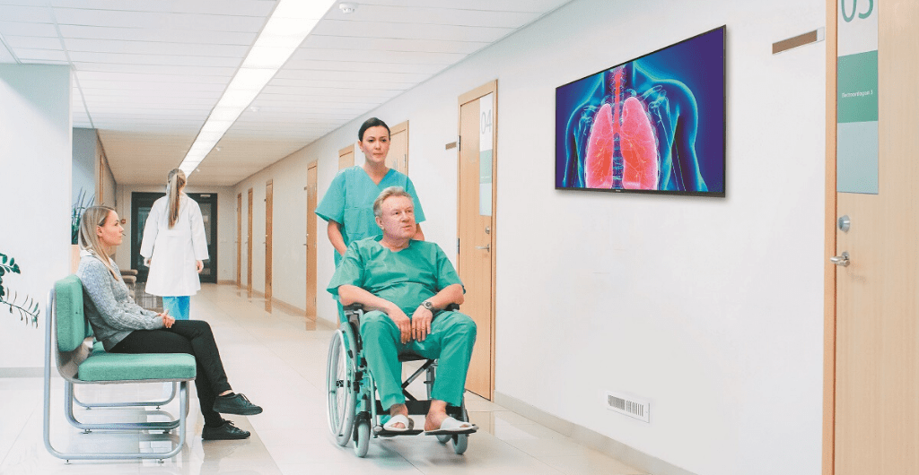 Reducing the risk of infection has always been a factor in the health sector, which is why the Philips bedside TVs include hydrophobic glass, antimicrobial casing and no raised buttons, but when it comes to hygiene, other products, including interactive displays such as the Philips T-Line range, need extra vigilance.